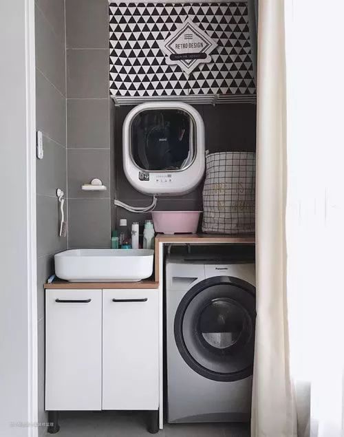 尽量将洗衣机和水槽设计在同一侧,方便处理领口或袖口等细部衣物清洁,高低台面能适应洗衣机和水槽各自的最佳高度;水槽要有冷热水,如果阳台距离热水器较远,走热水管不经济,就在水槽下面加小厨宝;如果有条件,还可以安装壁挂式迷你洗衣机,专门用来清洗内衣和宝宝的衣服。