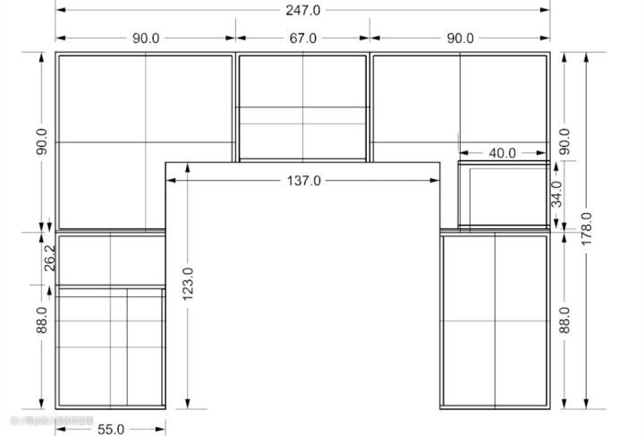 ▲屋主小美人驴的衣帽间,以及家具定制设计师给出的平面尺寸图(单位cm)