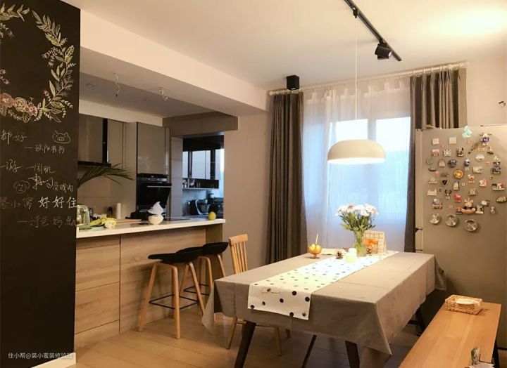 ▲ 屋主小美人驴的家,拆掉了隔墙,用吧台分隔餐厅和厨房