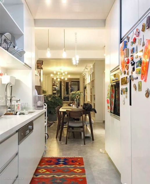 ▲ 屋主Lu的家,去掉狭窄又碍事的厨房门,布置两排橱柜,获得了更多的收纳和家电空间