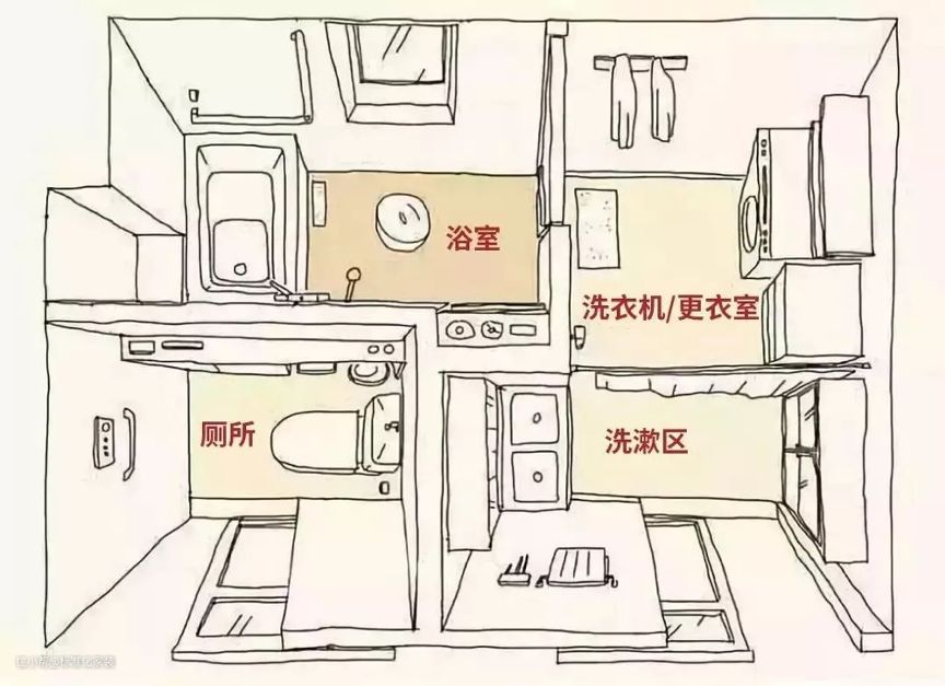 日本的国土面积非常小,但人口却不少,因此使用率最高的卫生间则是家里最不可忽视的一个空间,淋浴、沐浴、如厕、更衣、储物、家务、化妆等等要能够同时进行,而且大约8平方米就要搞定。