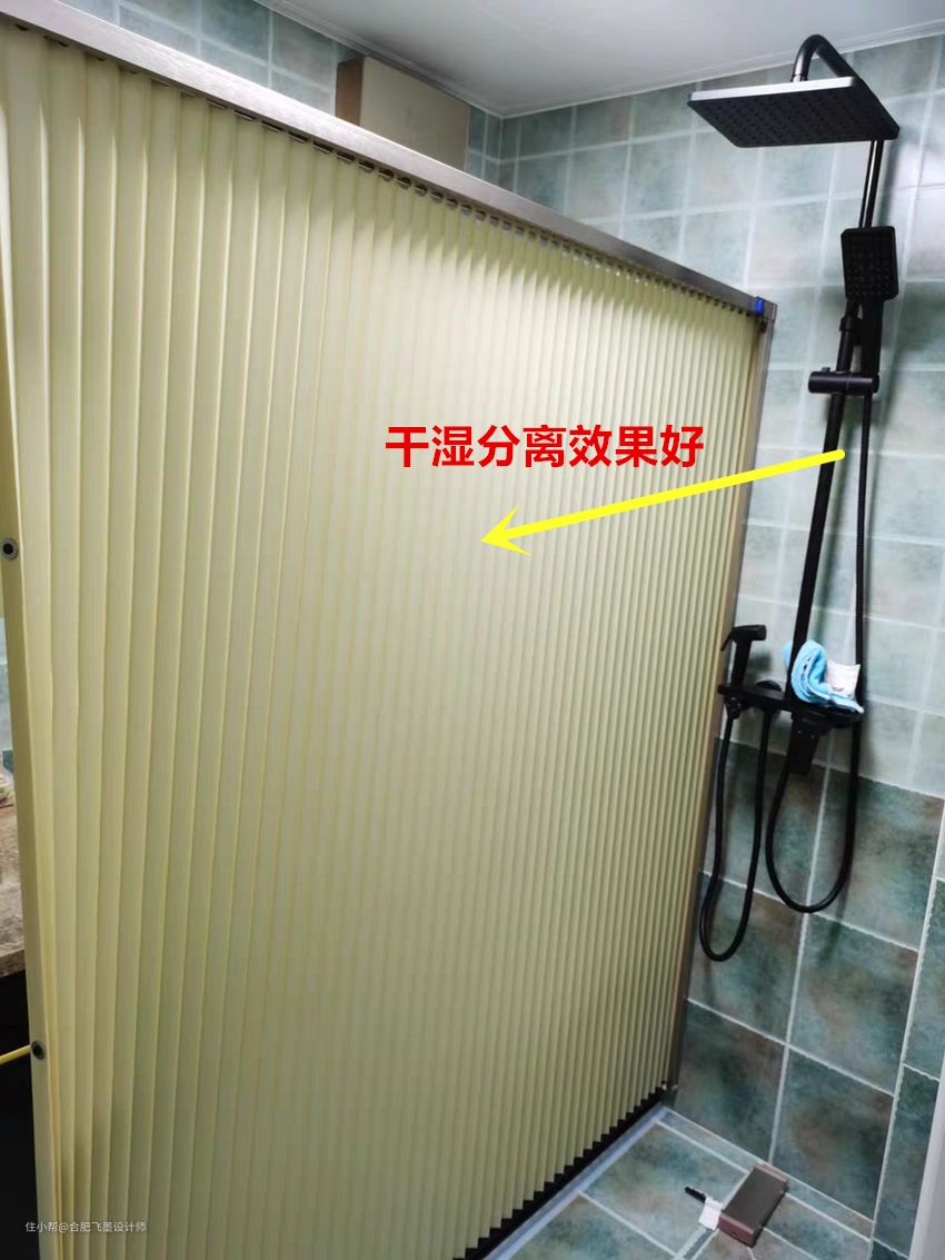 当然隐形浴帘也不是没缺点的,比如浴帘洗完澡之后,还是需要风干静置一段时间的,不然潮湿的浴帘收回到盖子里的话,很容易出现褶皱和生锈,这点同事倒是很贴心的提醒了我一下。不过省地实用确实是优势,回头我家也这么干,毕竟比大价钱装玻璃划算。