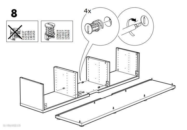 首先是板材、零部件的清点、分类(、编号),查看有无破损或缺失;然后有说明书的看说明书,没说明书的最好简单手画一下,做到心里有数。从我个人经验来看,返工是最耗时的,也是最有挫败感的,所以一定要先看清楚或想清楚后再动手,不要蛮干,而且反复拆装也容易损坏板材,尤其是颗粒板那种。