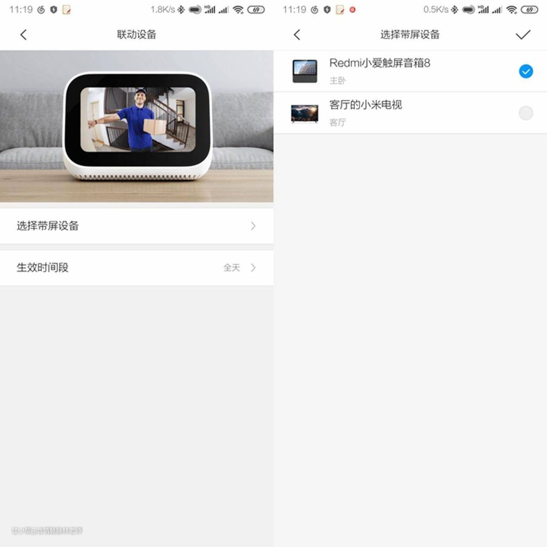 ▲之前我曾经购买了一款众筹的小米门铃2,现在在家门口使用,感觉非常不错,门口的动静能提前即使报警和查看,老妈经常丢在门口的废品纸箱也被隔壁门栋的老太太捡走了,从门铃才看到到底谁睡,不过都需要进入米家才能查看。现在使用Redmi小爱触屏音箱就可以实时监测门铃外的活动。
