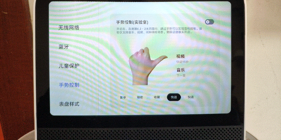 ▲在特定APP内部支持手势识别,四种停止,播放,下一首,上一首。等等的功能。
