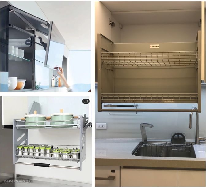 对于一般吊柜来说,「黄金收纳区」只在伸手能够到的部分;而可升降吊柜,解决了高处储物不方便取用的问题,让柜内每一寸都能被充分利用。