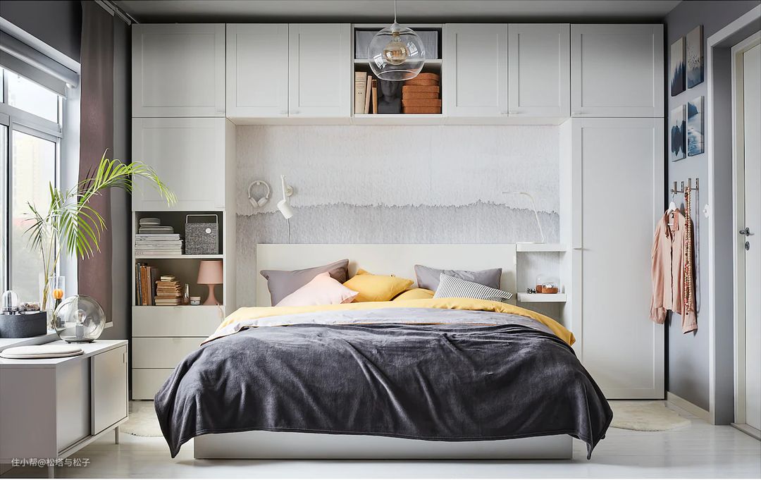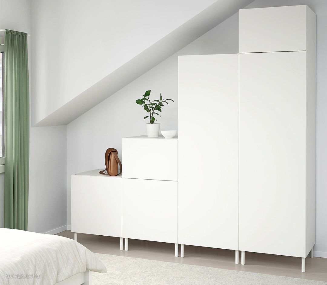 全房普拉萨,可以看到衣柜有多灵活,床的储物也很完善。But,选择这个床,床垫也只能宜家或者定制了,因为国内的床标准宽是1.5和1.8,普拉萨的床是1.4宽,和常规不同。