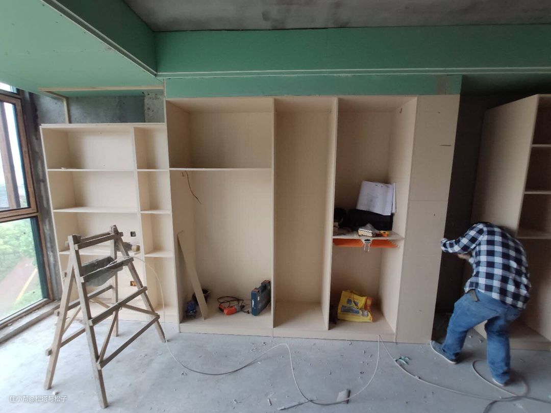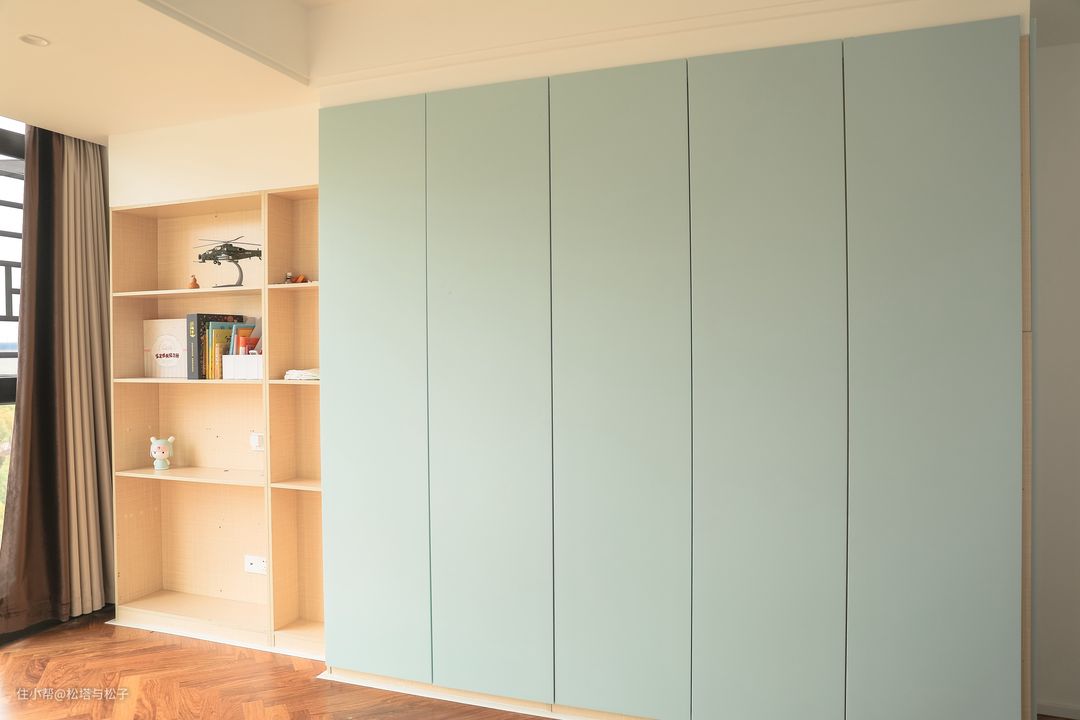 这就是曾经定制的衣帽间,木工师傅改成了儿子房的衣柜和书柜。
