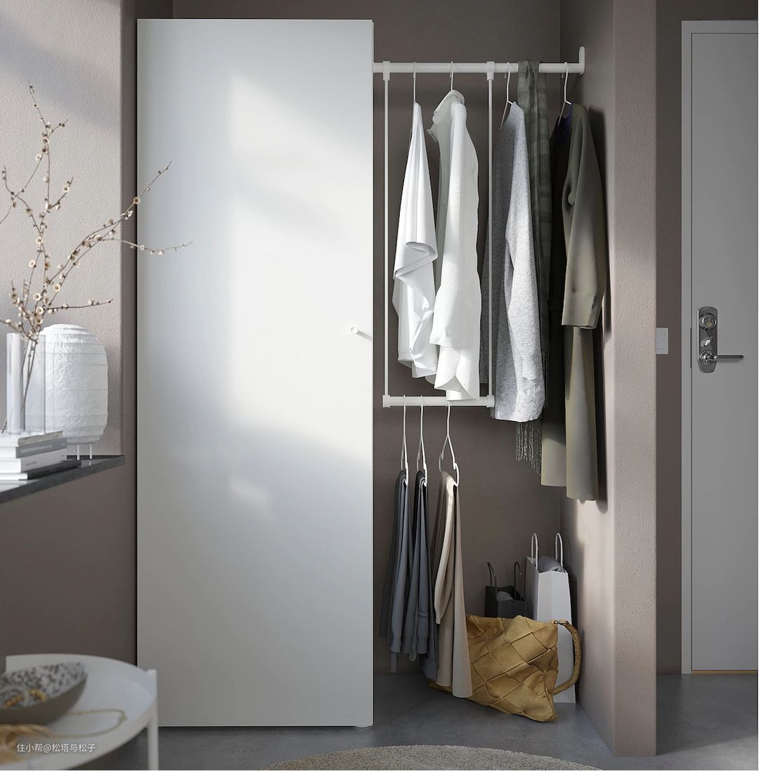 帕克斯最窄宽度为50cm,每次递增25cm,没有上限。多出的部分一定是小于25cm,可以借鉴定制柜子的思路,四周也用封板,因为即便是柜子一侧靠墙,木工师傅也垫了一块大芯板打底的,因为柜门开合需要空间。或是在侧面挂上衣帽钩做隔夜衣的收纳。