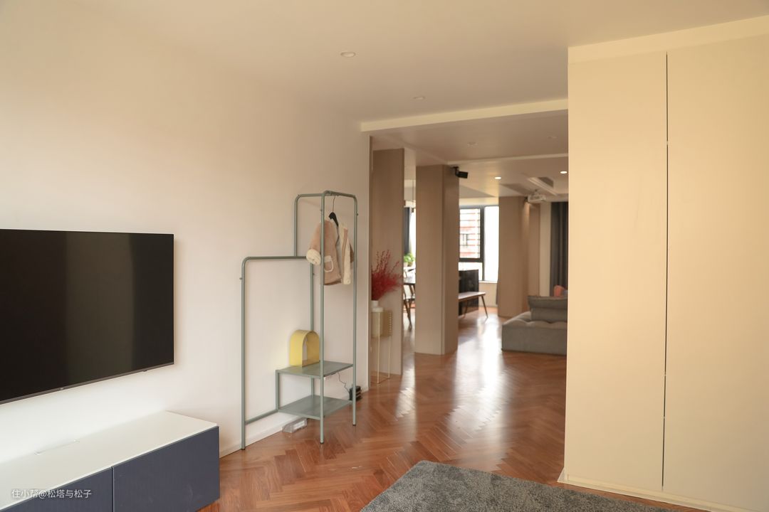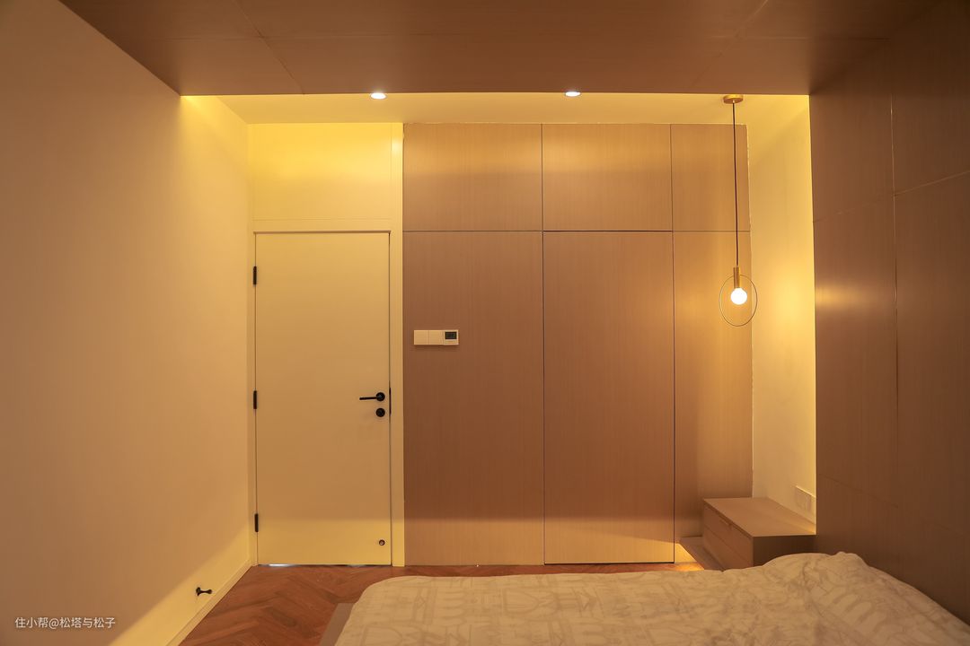 放弃定制家居后,凭借着天天刷家居软件的学习精神,其实还是预算吃紧的罪过,我琢磨出一套用宜家做定制的办法,用宜家成品堆积木,把衣柜塞进墙面凹位,原衣帽间强行套上宜家柜门。