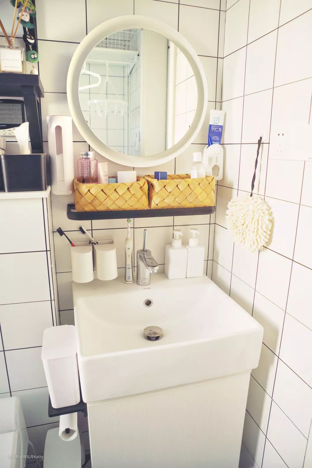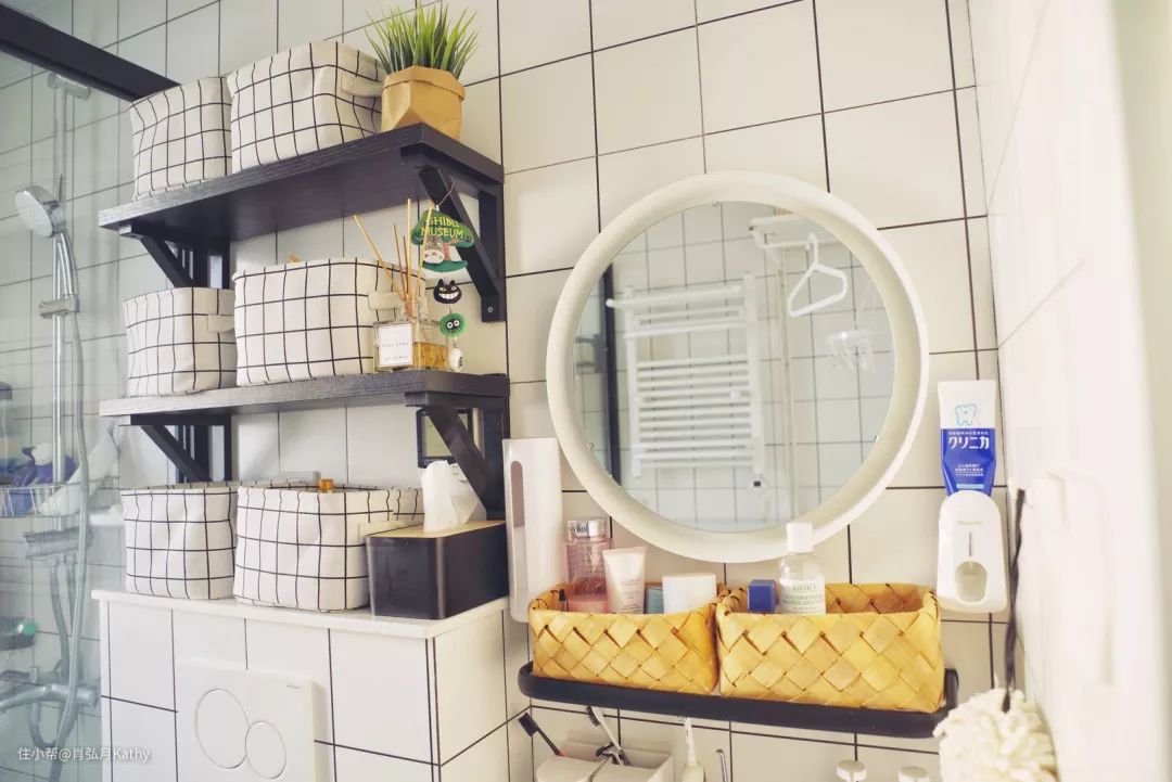 是的,我没有选择当下流行的镜柜,此处牺牲了储物选择了颜值,也不可惜:一想到每次护肤还要多出开门和关门两次操作就感到麻烦,而且,打开镜柜就看不到镜子了,这是什么吊诡的操作?不要跟我提对开门的镜柜,中间那条缝不能忍。