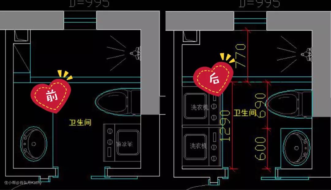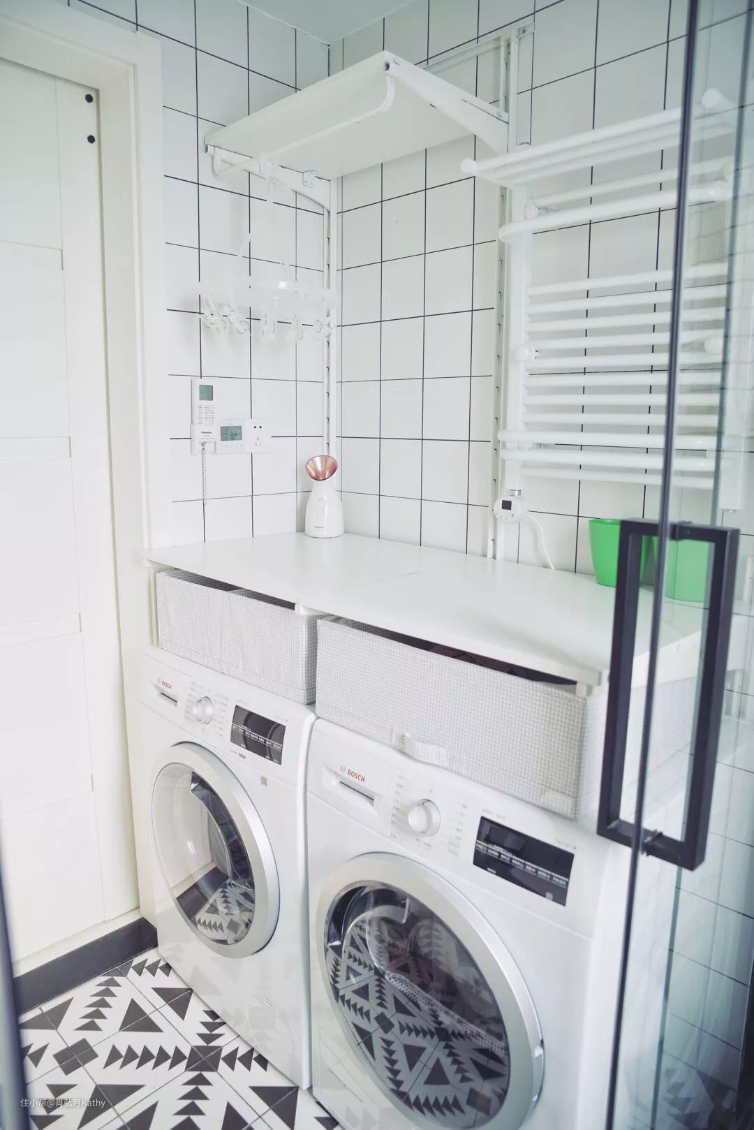 又基于美观的考虑,放弃了叠放洗衣机烘衣机的常见选择,几经迭代,这才有了现在的模样。