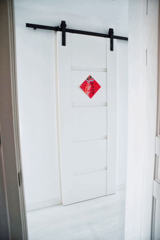 门外是走廊,内外都没法开门,砌墙的时候忘了考虑嵌入式移门,只能退而求其次改用谷仓门,目前为止倒也没觉得哪里不好,好看是真的。