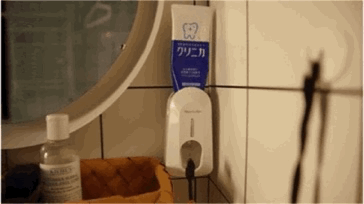 镜灯右边是自动挤牙膏盒,省去了每次开关牙膏盖和挤牙膏的时间。