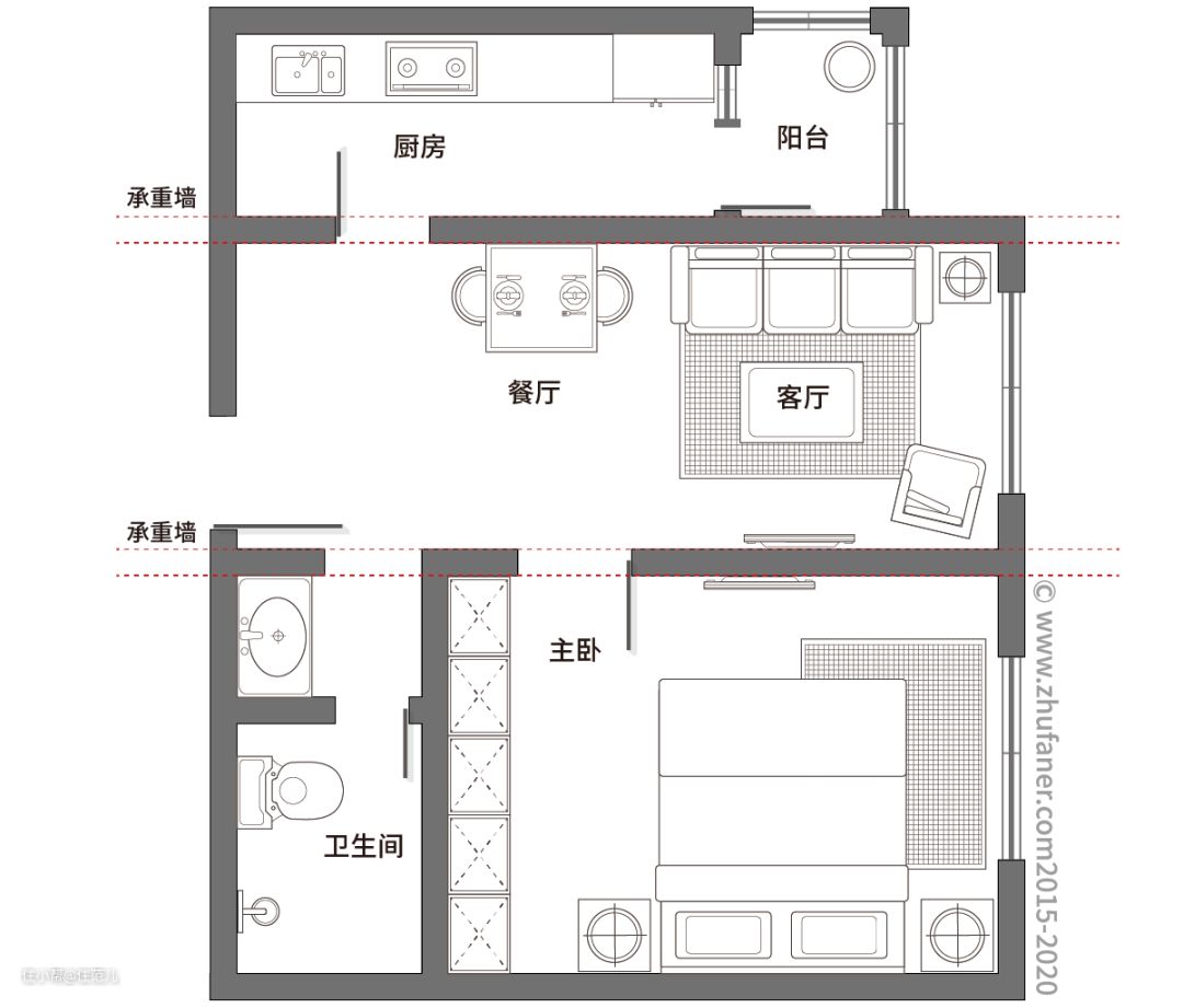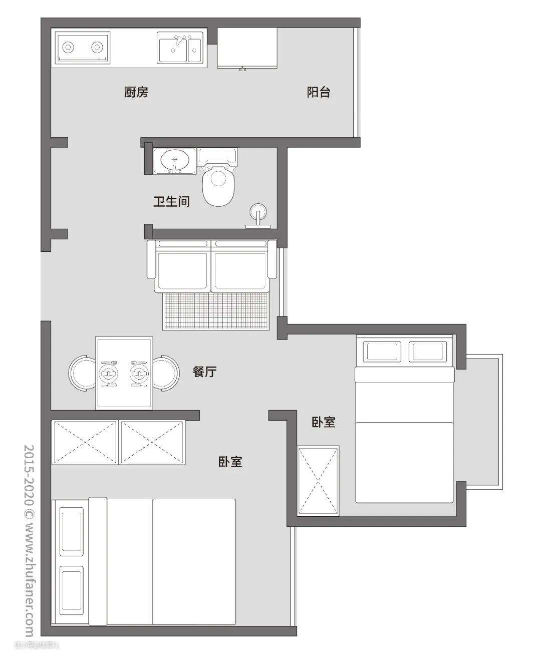 更多的空间留出来给客厅、给卧室,边边角角才安排厨卫。