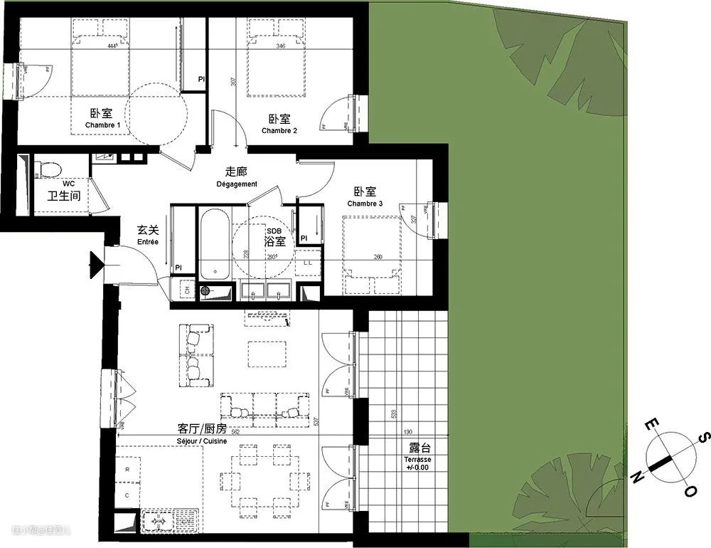 比如像这个巴黎的户型,户型也是对向采光,和国内一些二居非常相似。