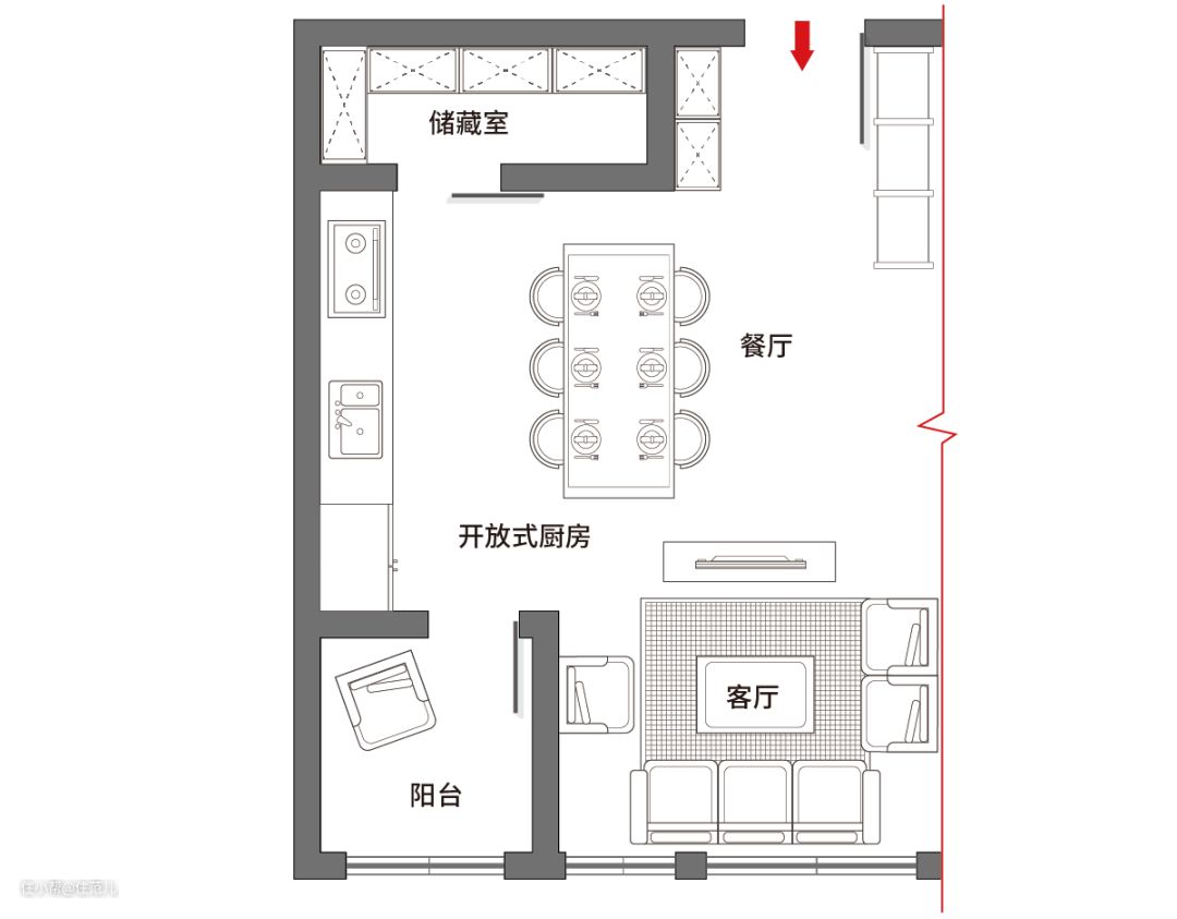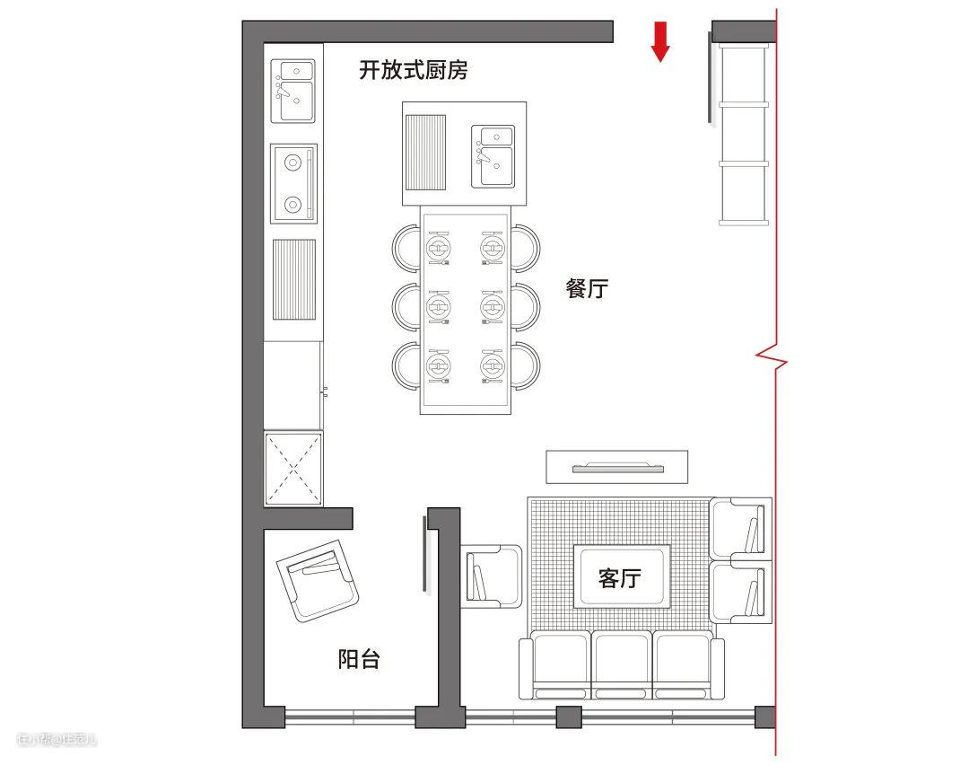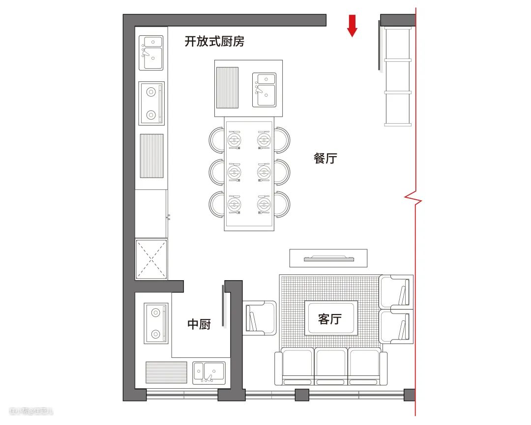 如果做了开放式厨房,餐客厨连在一起,厨房就不需要单独开窗户了。