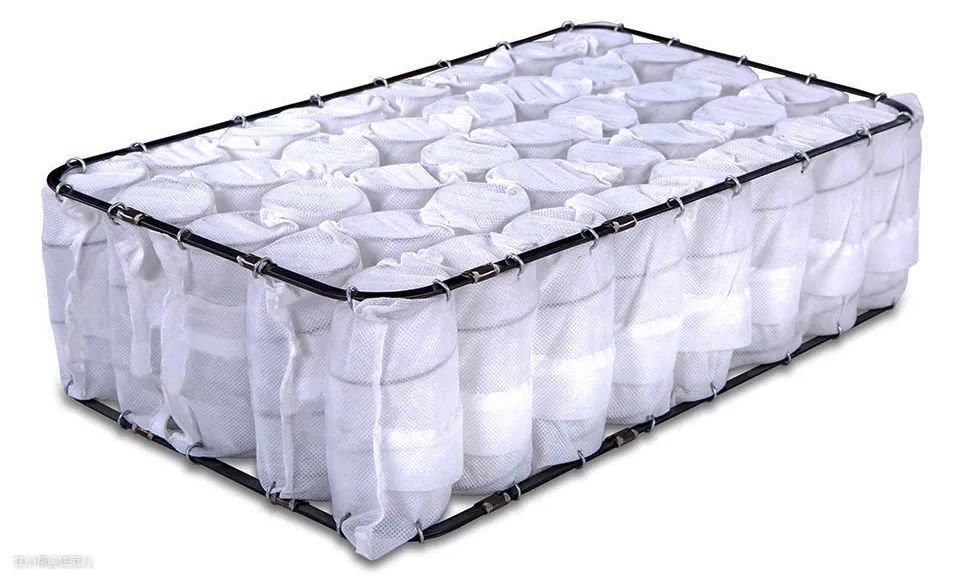 主流弹簧有三种,独立袋装弹簧、妙而扣弹簧、LFK开口弹簧。