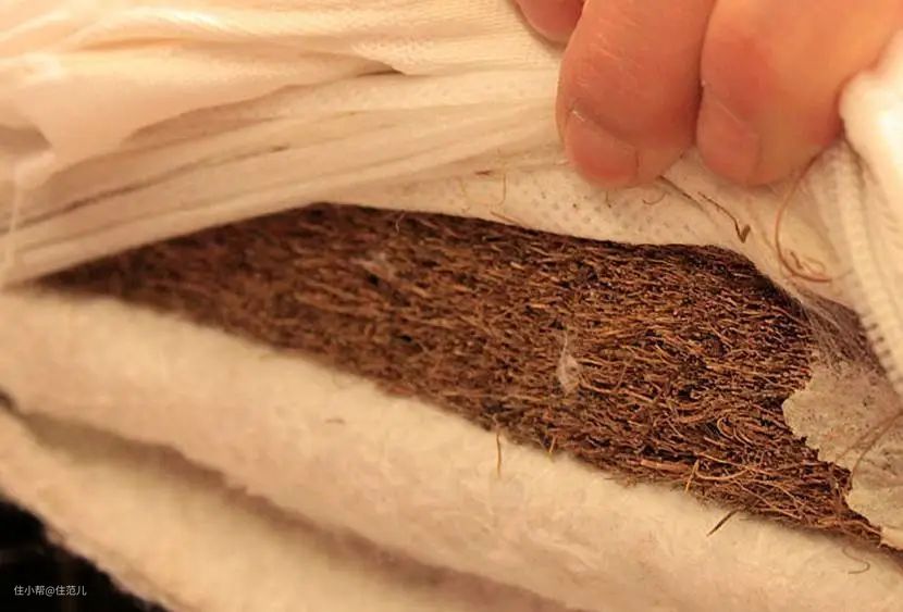 椰棕床垫的正确工艺是高温热压——把棕丝和热熔纤维丝混合,纤维丝受热收缩,就把棕丝固定了,高温还能杀菌杀虫。