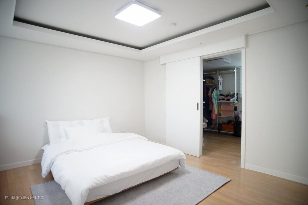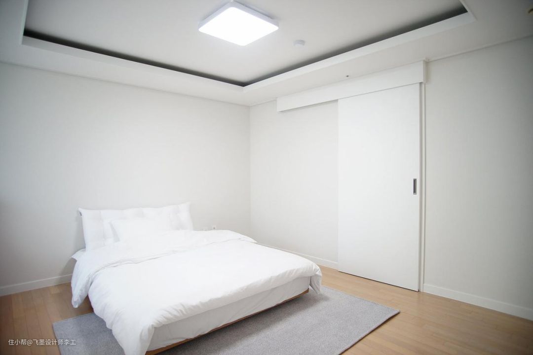 纯白色的卧室里除了一张床,没有多余的东西,有种现在很流行的极简风。