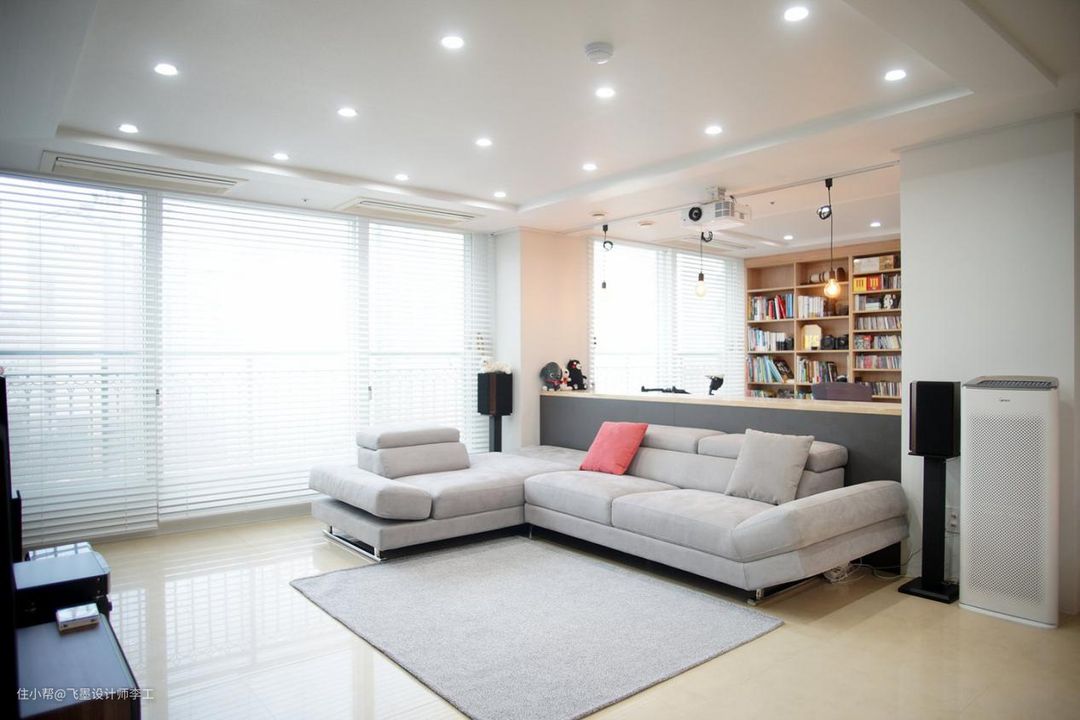 20平米的客厅,只是在沙发后面打一排矮柜,成了同户型的参考模板