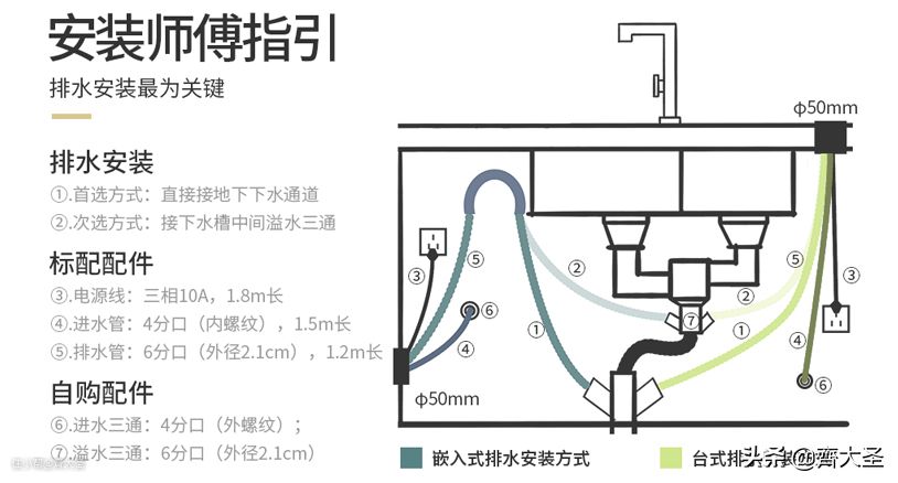 - 需要事先搞清楚洗碗机的接口是四分口/六分口,以此选择龙头。一般情况下国产四分居多,进口六分居多。