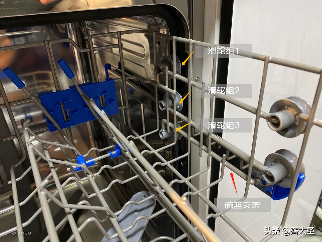 因为我们没法保证自家的餐具和广告演示里的一模一样,实际情况可能五花八门,所以洗碗机内部的机构最好是可调的。什么意思呢?