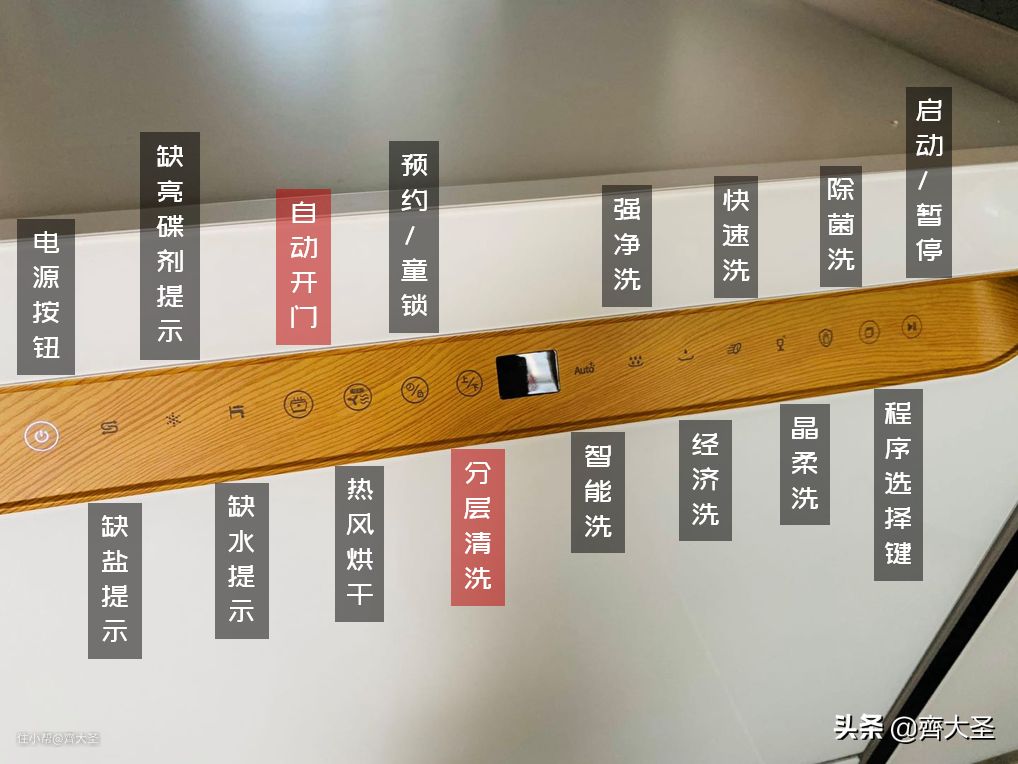 除了门板以外,我也超爱这个控制面板,不夸张的说是我见过的所有洗碗机里最有质感、最美、最有设计感的。樱桃木纹的设计,触感也十分接近,led灯透射而出。