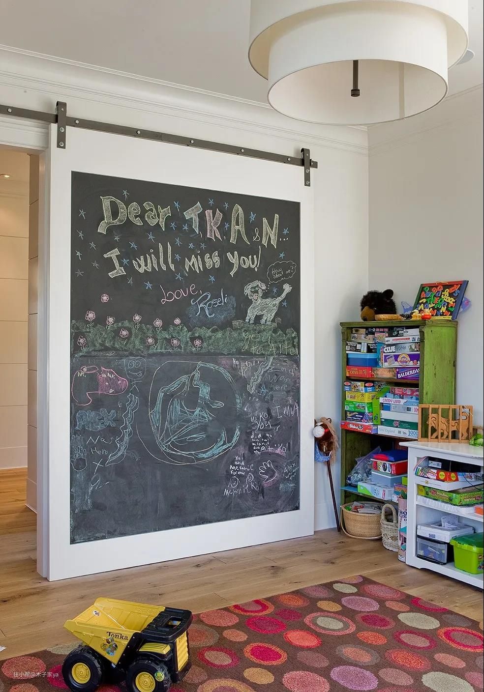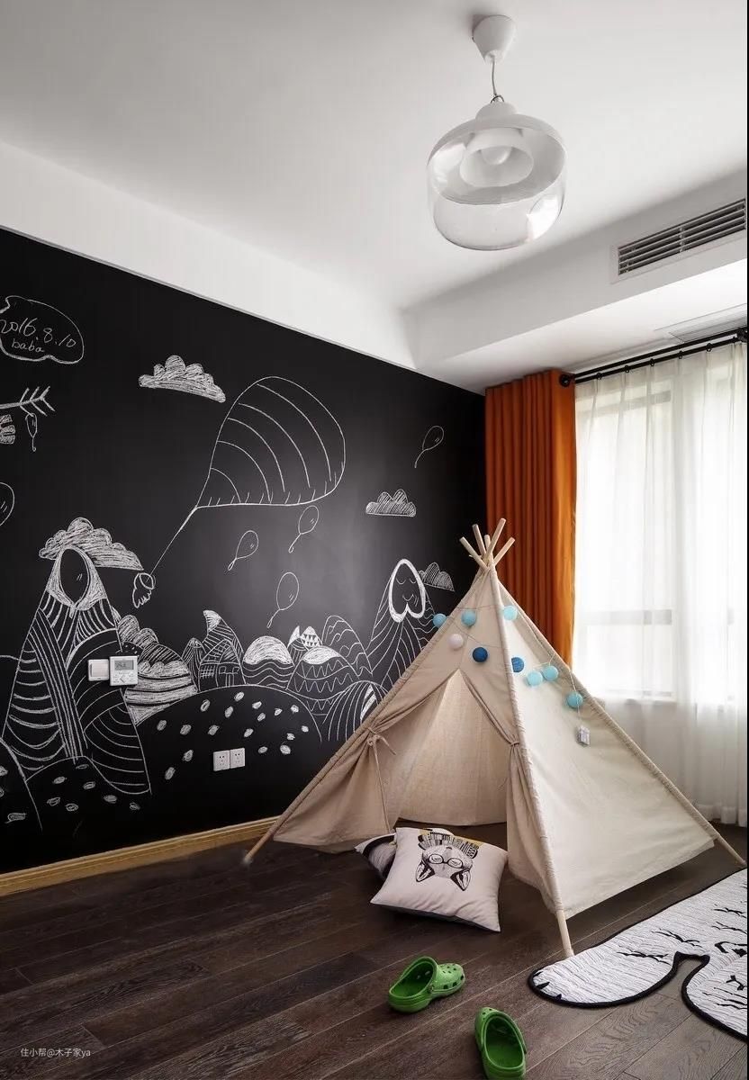 孩子的天性是爱画画的,在儿童房墙面留一面墙刷上黑板漆也是非常不错的。