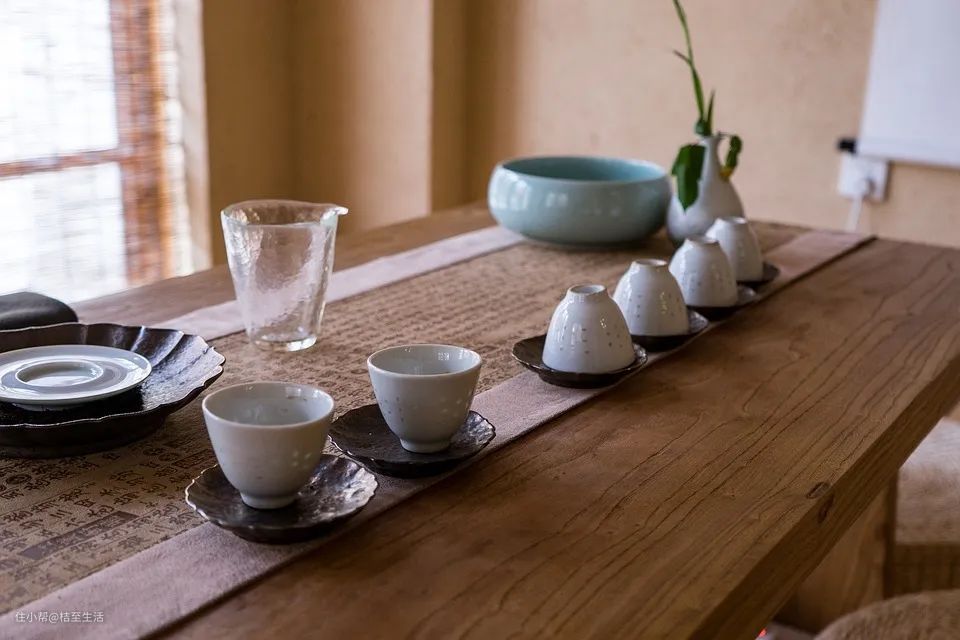 桌旗 :可以简单理解为桌布,选择多样,多使用素色,选择图案则以素雅为主,也可以使用竹席来代替。