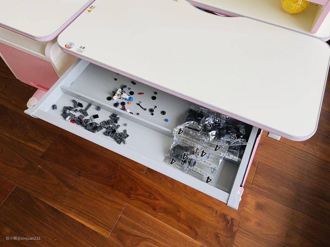 抽屉呢,想象空间就更大了,传统的放尺子、画笔、橡皮等文具算是基础操作。其他的,比如积木的零件、拼图的零件、剪刀、胶水、各类小玩偶都可以胜任,非常的实用。