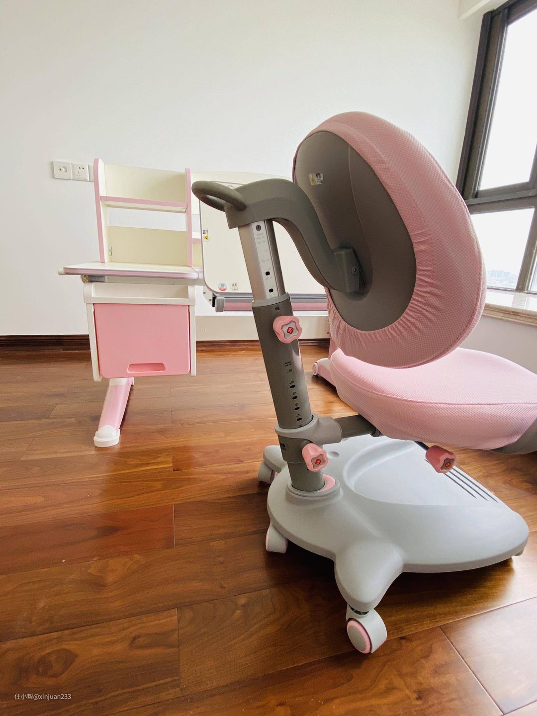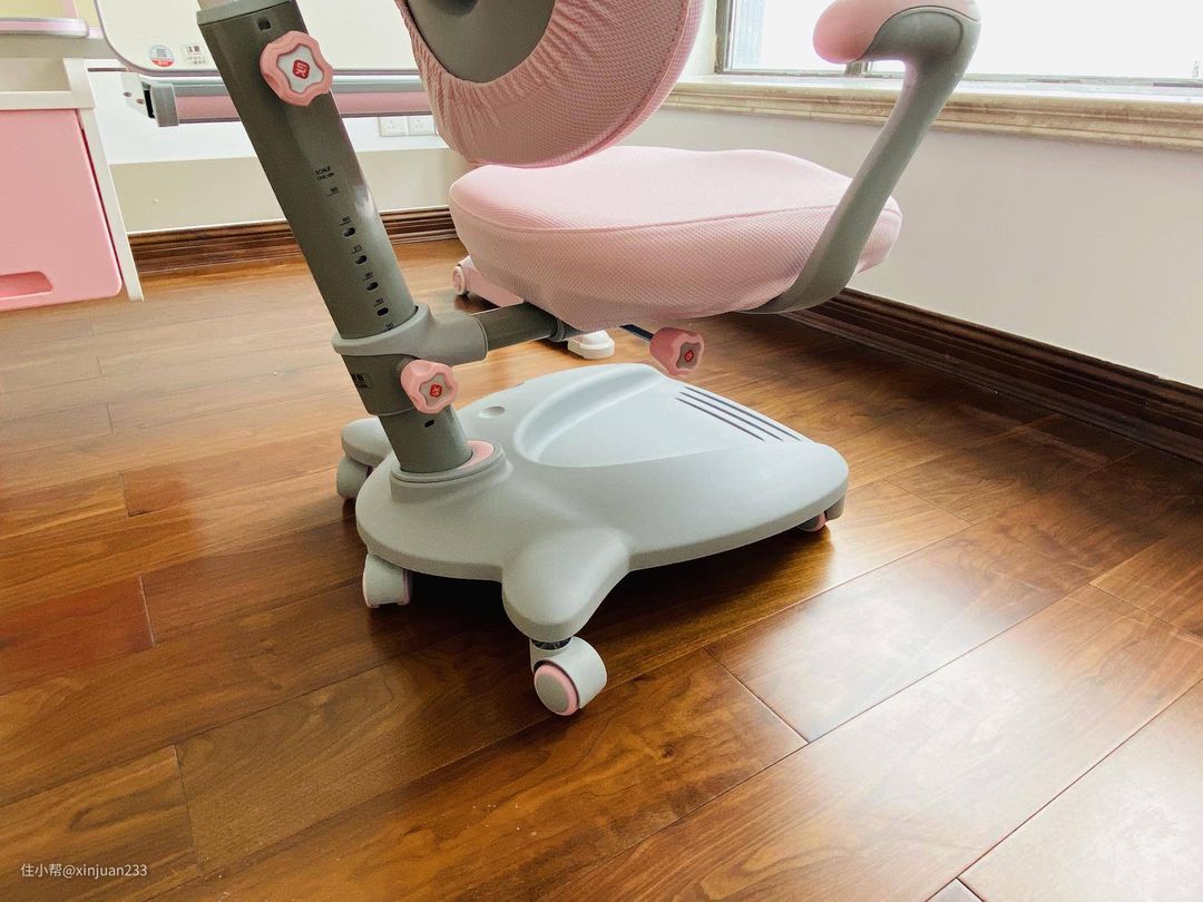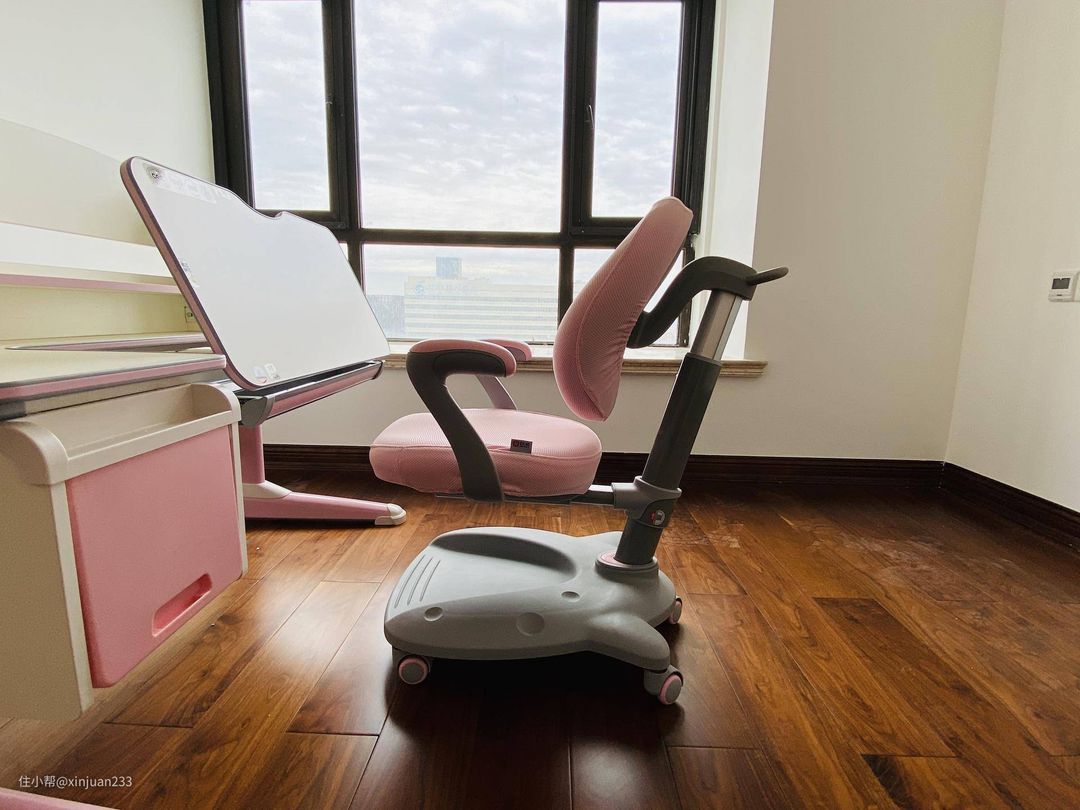 看完了桌子我们来看看椅子,儿童学习椅和成人的电脑椅,区别还是很大的,我们仔细看一看。先来一张整体图,再一点点看差别。