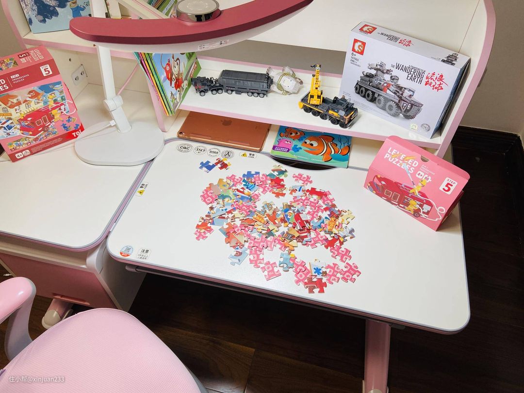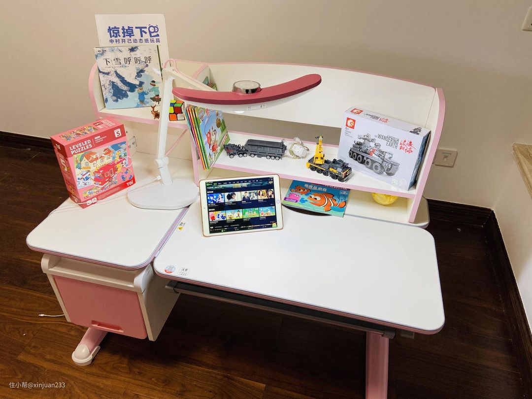 3、桌面要宽敞清爽,面积要大,有一定的收纳功能,分区设计合理。有娃的朋友应该知道,小宝贝的东西,不管是书籍绘本还是玩具,都是多的不要不要的,家里各种被占领是家常便饭。所以桌子一定要宽敞,这样做手工玩拼图或者画画的时候,才不会捉襟见肘(小宝贝经常同时进行多个活动),收纳功能倒不是为了一定要放多少多东西,而是可以临时存放一些半成本,比如拼到一半的积木,看了1/3的绘本。这样等需要的时候,可以随手取放,更加的方便。