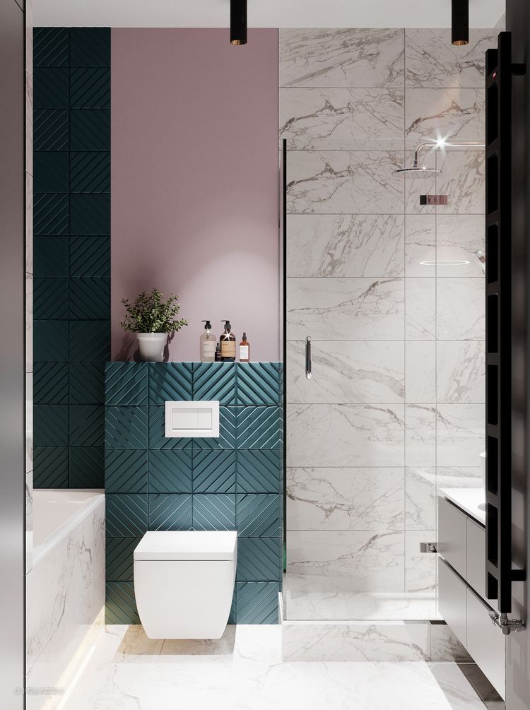 卫生间的墙面要选择亮色系,如白色,米色、浅灰色等,提升室内明亮度。
