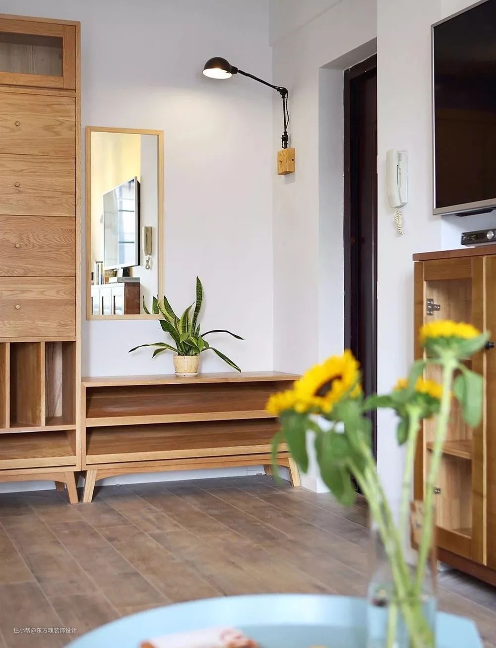 我们家一进门直对着客餐厅,机智的我做了个收纳柜隔断~又有玄关又有隐私。