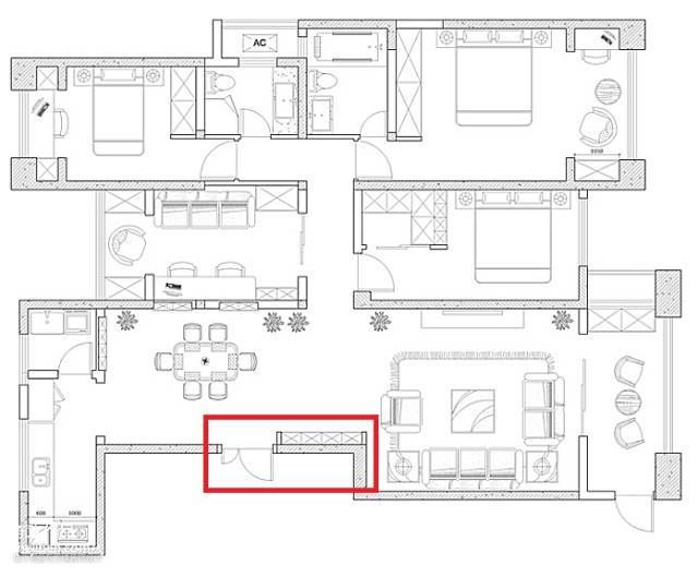 进门后,脱外套、拖鞋、放包包都需要地方,进门是厅也没有办法很好地保护家中隐私。