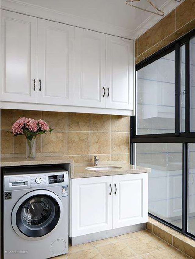 一般情况下,洗衣柜设计在1.1-1.2m最好,一边设置储物空间、一边放洗衣机。