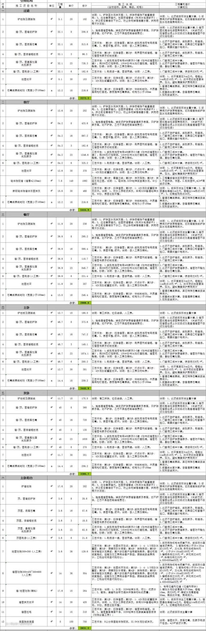 一般装修合同后面会有好几个附件,比较重要的是工程报价单(就是我们通俗说的装修公司报价)。