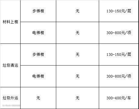水泥沙子会涉及到一个上楼费,也是一个坑,常规价格如下。