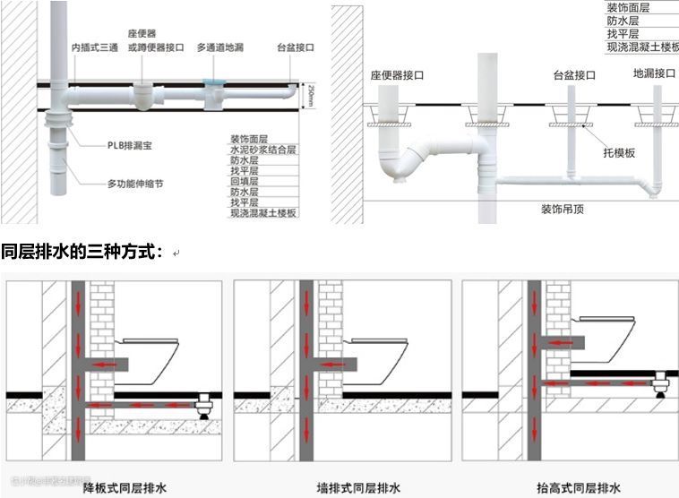 7、如果是你自己家、酒店这种比较高端的场所,你也舍得花钱的话,一般倾向于用同层排水,但是要注意做好沉箱的防水,二次排水,回填物材料,等等施工质量问题。