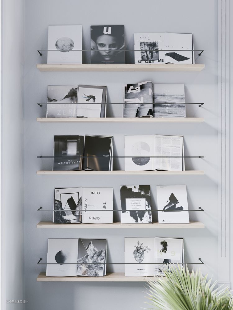 9.贴墙式书架,差不多是贴在墙壁的书架,一点都不占地,有一种书报刊的感觉,看起来特别的舒服,缺点就是放不了几本书。