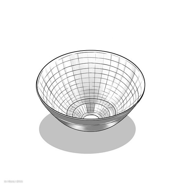 反射杯是一个基础防眩手段,一般的射灯都会通过反射杯对光线进行控制,区别就在于反射杯的质量,我们可以通过观察开灯时光斑的形态来确定其品质的好坏。好的反射杯打出的光斑比较干净,不会有明显的副光斑。质量相对较差的反射杯打出的光,能清楚的感受到主副光斑之间生硬的过渡。