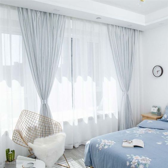 纱质窗帘装饰性强,透光性比较好,能够增强室内的纵深感,一般适合客厅或者阳台,卧室里面可以作为第一层窗帘安装