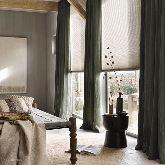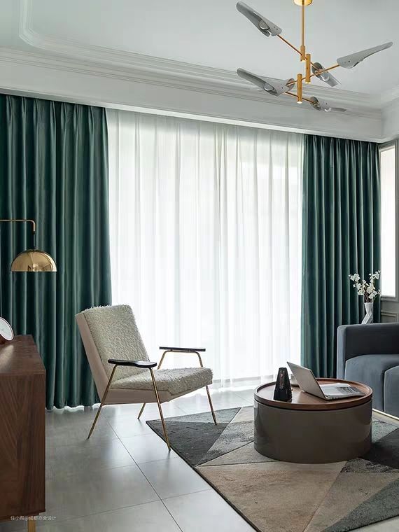 带有复古气的绒面窗帘,手感柔软,垂坠感墙,染料与纤维发生化学反应,颜色牢度较强。缺点就是容易挂灰、厚重不易清洗,洗后可能会出现缩水的情况,打理起来比较麻烦