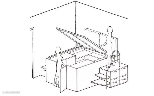 对于“衣帽间控”来说,如果家里空间实在局限,又不想轻易放弃自己的需求,那就可以参考以下脑洞大开的衣帽间模式,通过抬高床架的方式尽力挖掘出一个迷你衣帽间。