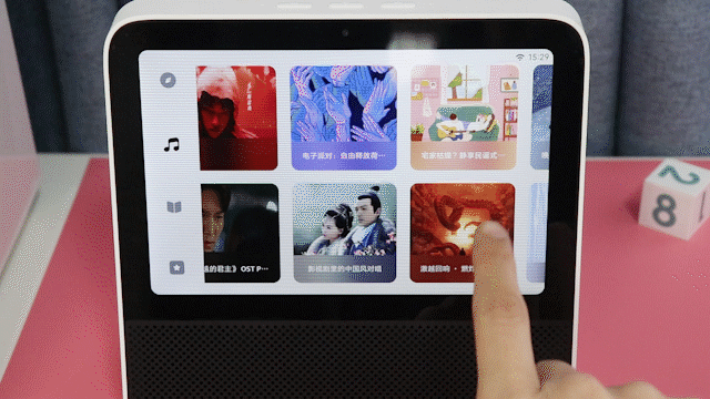 手机界MIUI是神级存在,号称“万物源于MIUI”。Redmi小爱触屏音箱8的系统继承了MIUI的简洁与便捷,主界面左侧4个图标对应不同的导航页面,右侧则可以横向滑动查看更多内容或模块。