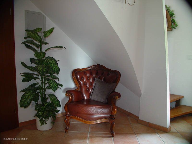 楼梯下空间虽然不大,但摆张椅子,正好在入户处,可以用作换鞋区,而且还能作为自己的休闲角落,不浪费一点儿空间!