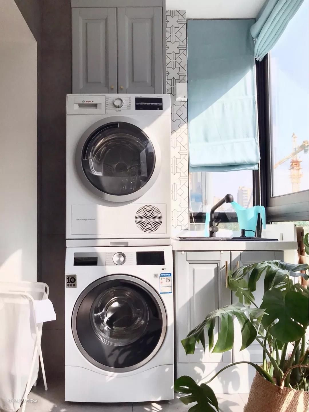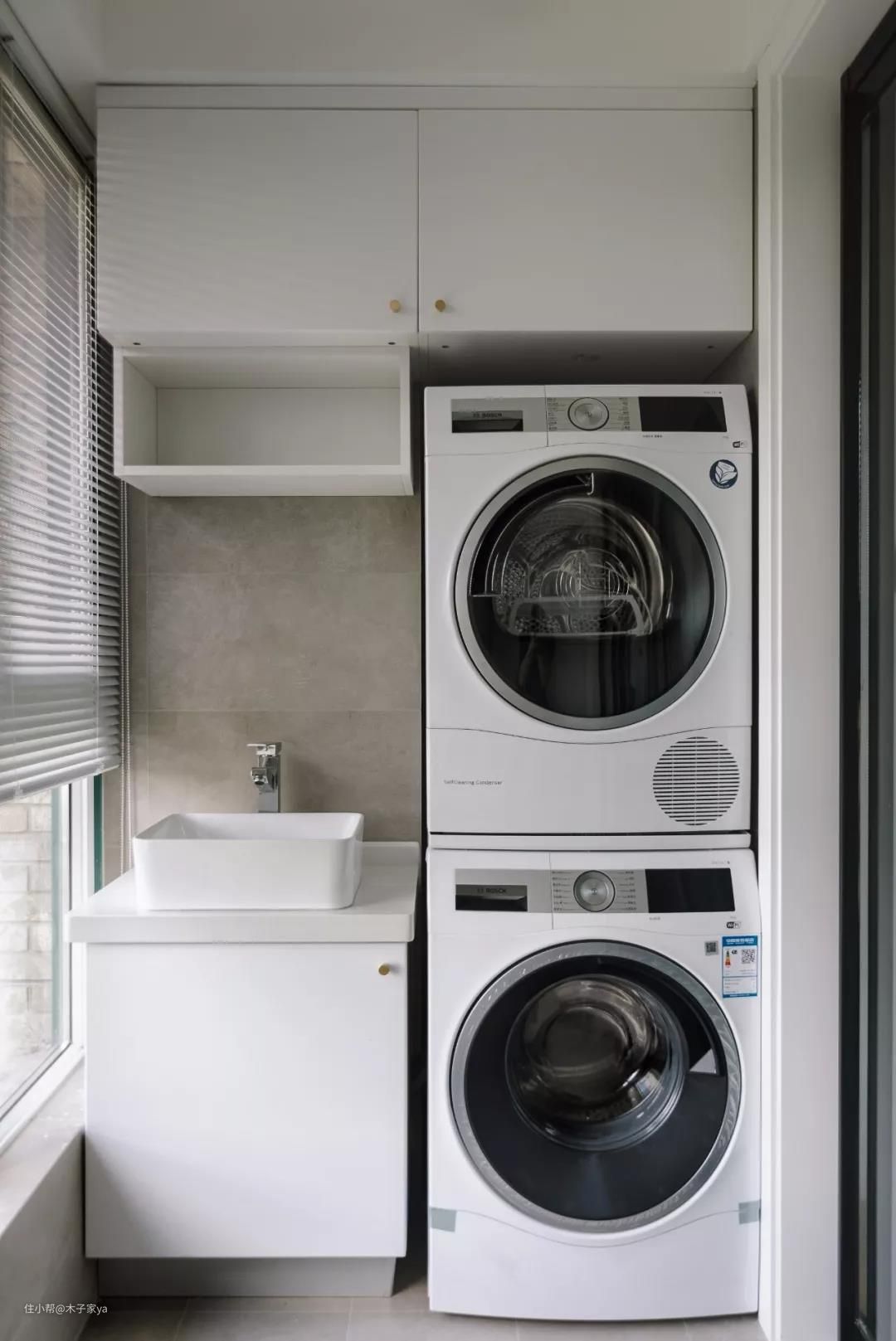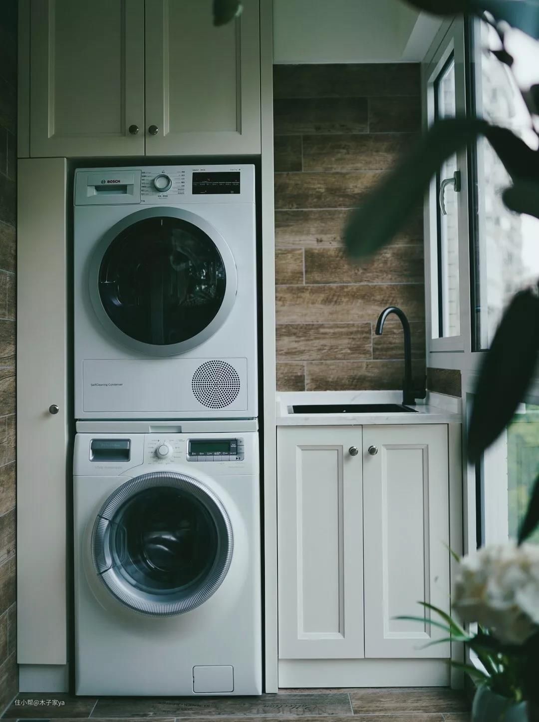三、洗衣机+烘干机放洗衣房家务区,空间要大