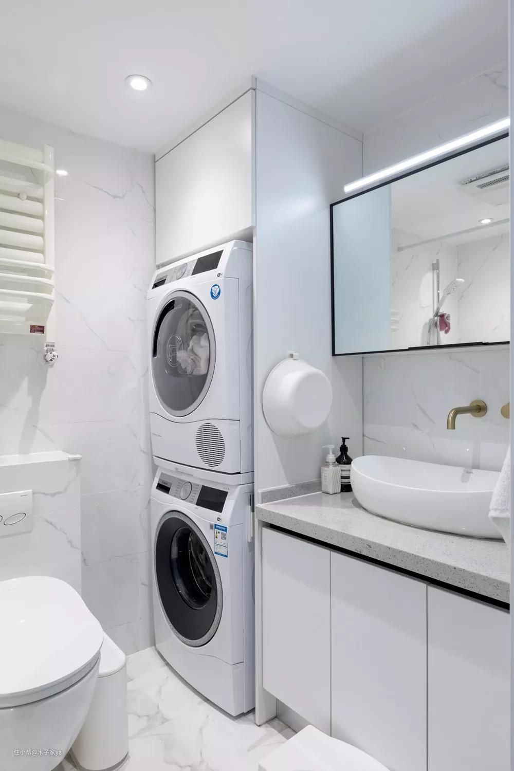 二、洗衣机+烘干机放卫生间,做好干湿分离