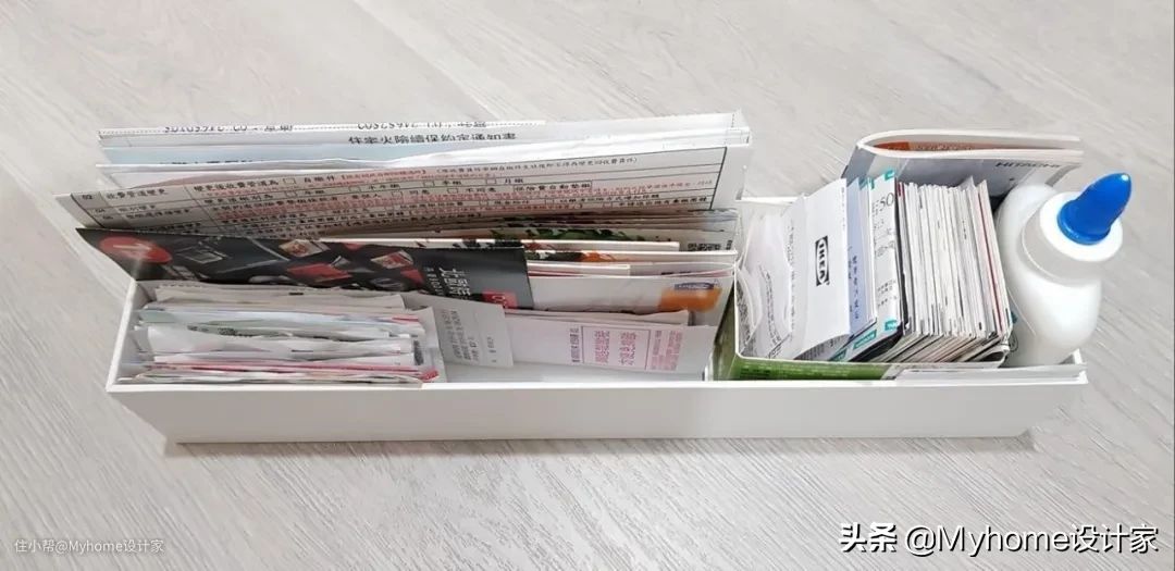 长型的盒子很适合拿来收整小票,盒中盒的概念把大小发票分门别类收好,很好用。